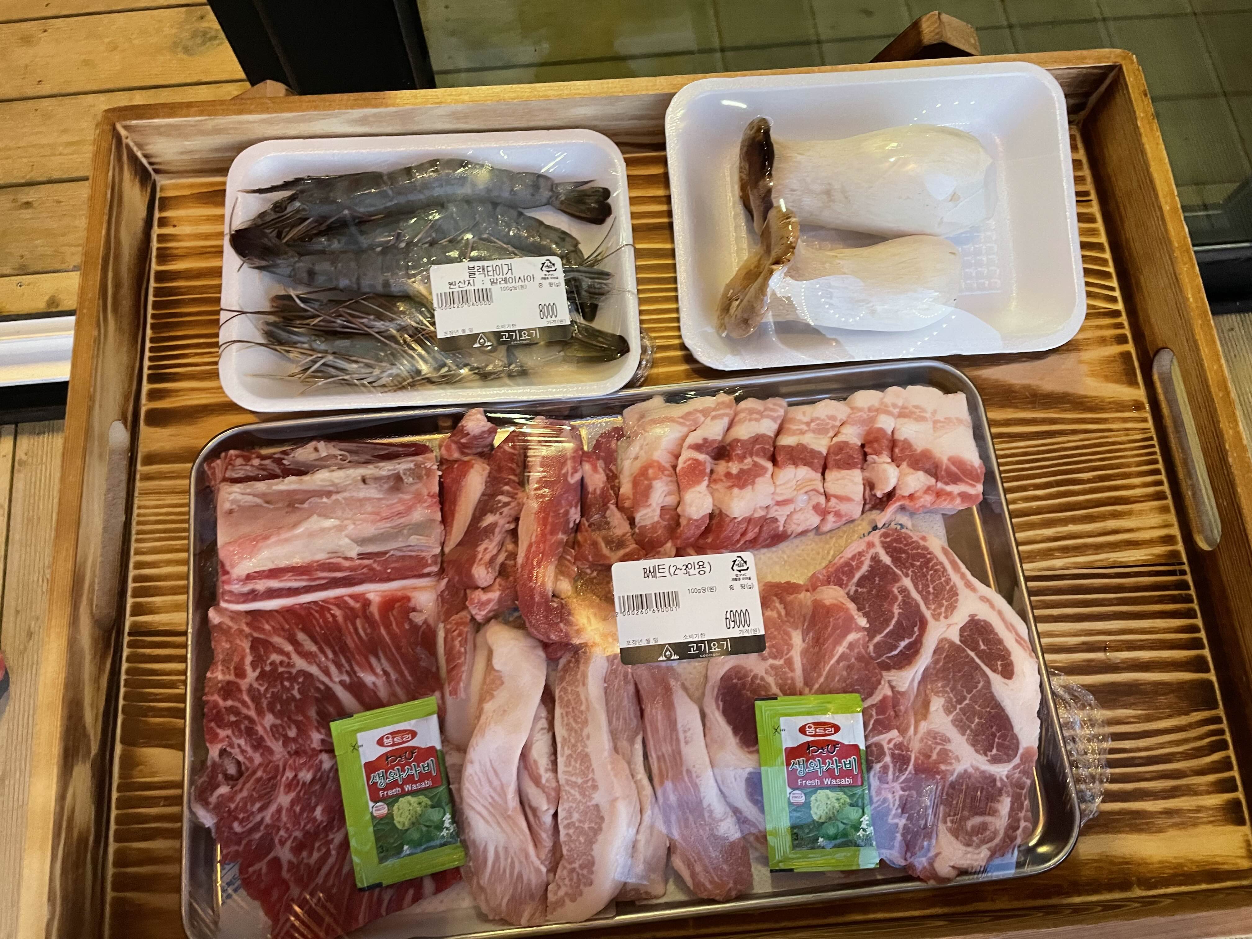 ๊ณ ๊ธฐ๋ฟ๋ง ์๋๋ผ ๋ผ๋ฉด์ด๋ ๊ณผ์๋ฅ๋ ์ค๋น๋์ด์์ต๋๋ค.