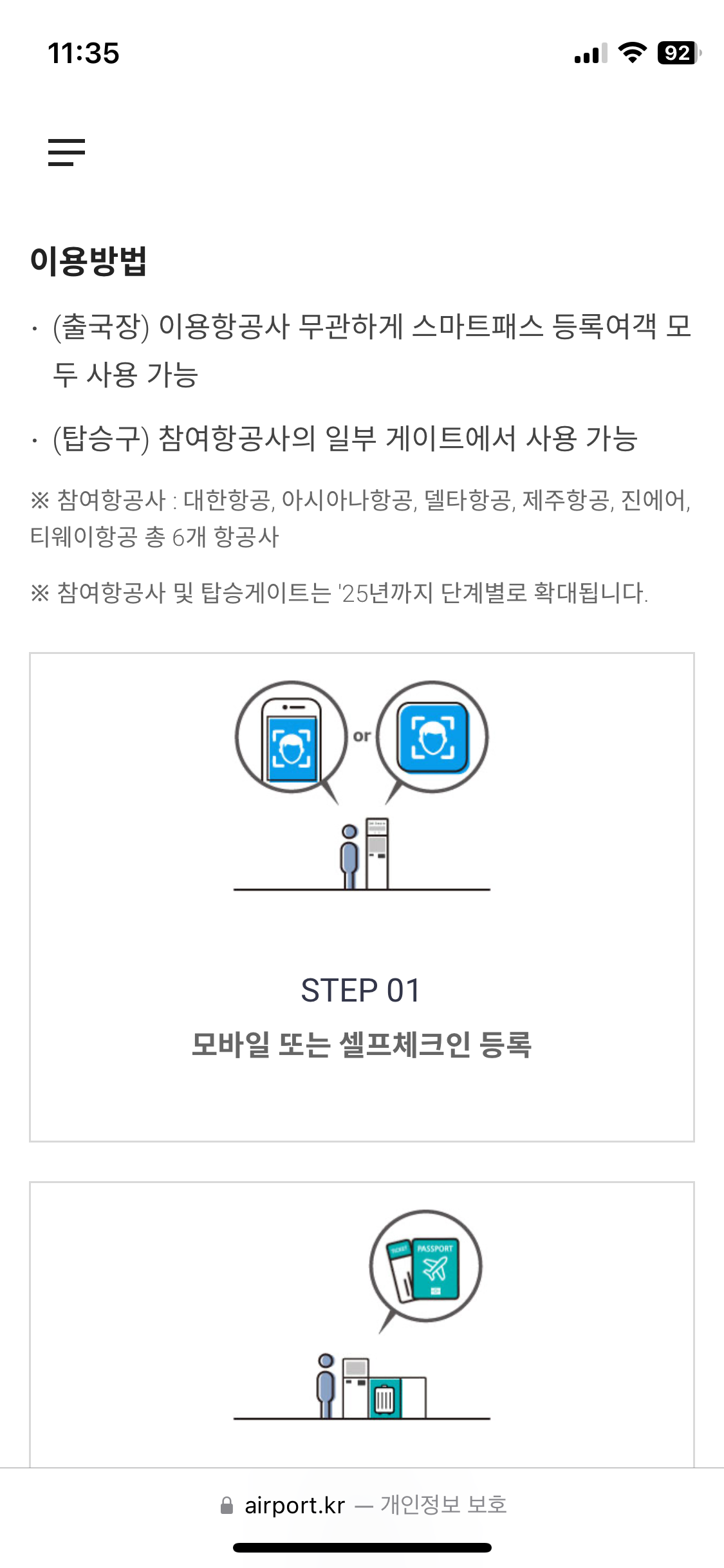 ๋ฏธ๋ฆฌ ๋ฑ๋ก๋ง ํด๋๋ฉด ์ถ๊ตญ์ฅ์ผ๋ก ๋๊ฐ๋ ๋จ๊ณ๋ฅผ ์ผ๊ตด์ธ์์ผ๋ก ๊ฐ์ํํ๋ค๊ณ ์๊ฐํ๋ฉด ๋๊ฒ ์ต๋๋ค.