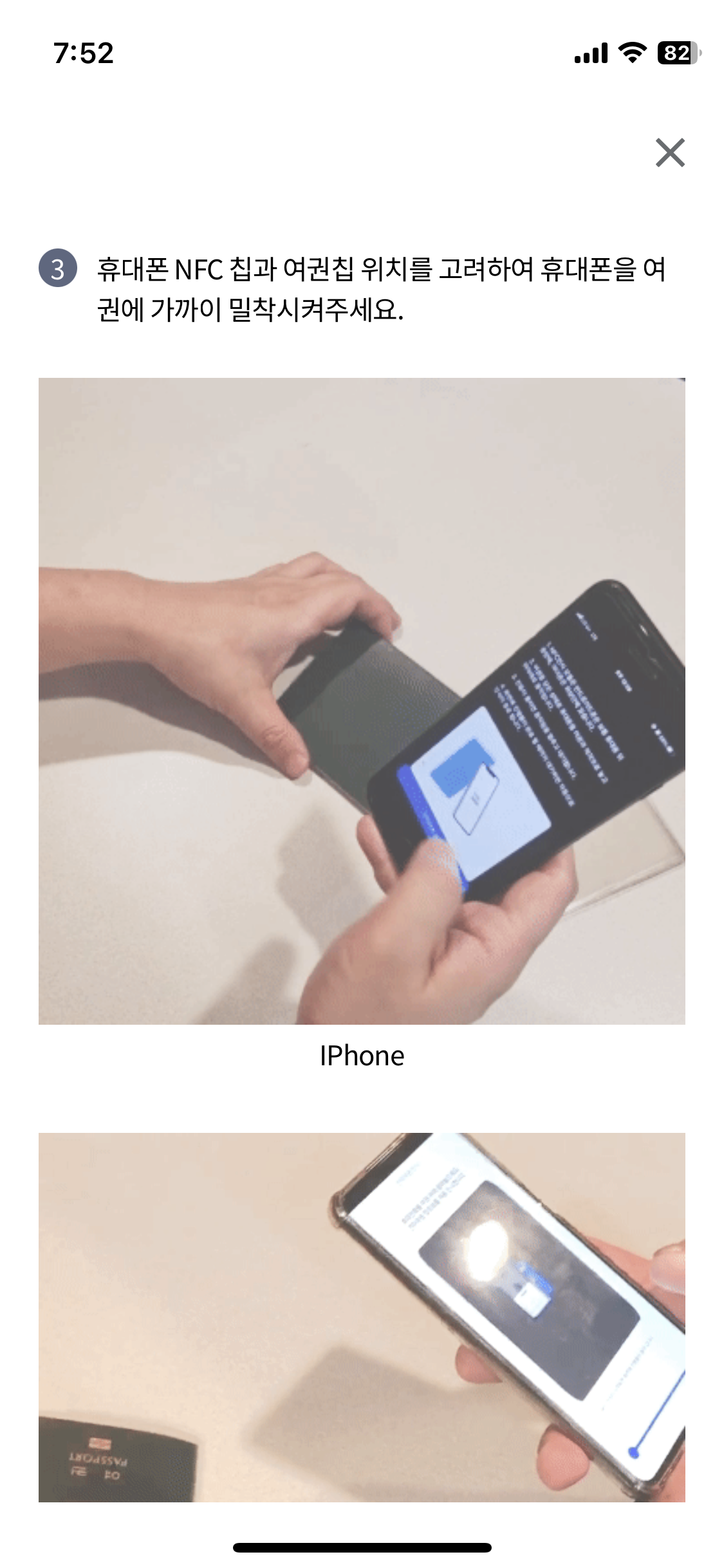 ์ค๋ช ํ์ด์ง๋ฅผ ๋ณด๋ฉด ํด๋ํฐ๋ง๋ค NFC ํ๊ทธ ์นฉ ์์น์